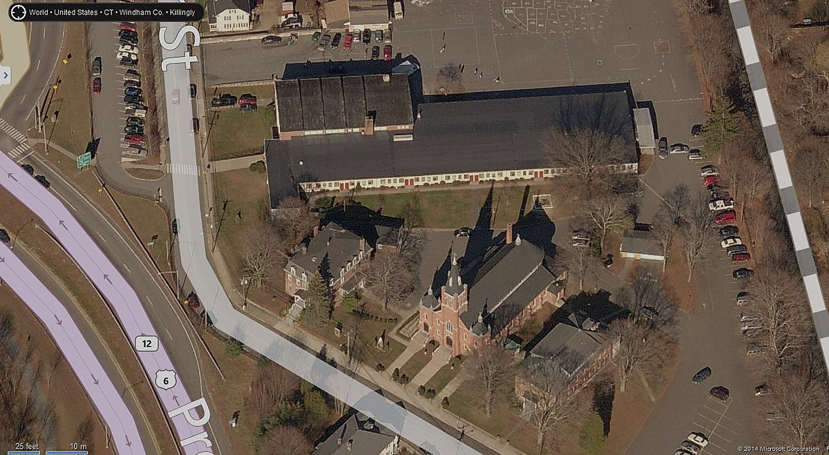 Photo: Aerial view showing church, convent and school buildings.. (Tod Bryant)