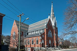 St. Patrick's Church is in the Brooklyn neighborhood of Waterbury. Like most of Waterbury's neighborhoods, Brooklyn was virtually a self-sustaining community with its own stores, two churches, taverns, bakeries, factories, and schools. As early as the 1860s, Irish immigrants began settling in Brooklyn, followed by the Polish and Lithuanians in the 1890s. St. Patrick's was founded in the area where new Irish immigrants lived and was Waterbury's second Catholic church ... [ more ] | |